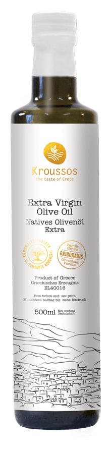 Unser Kroussos Olivenöl schmeckt fruchtig und zeichnet sich durch eine milde Schärfe aus, die im Abgang zu einem leichten Kratzen... Mehr lesen